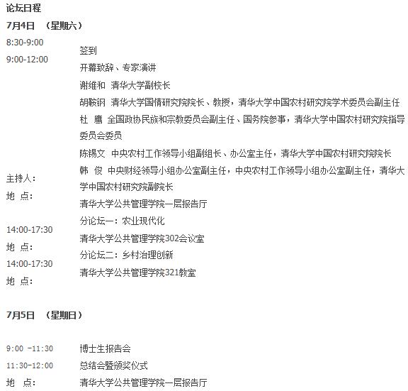 “清华农村研究博士生论坛”由清华大学中国农村研究院主办,旨在为全国涉农领域的优秀博士生提供一个相互学习与交流的平台,拓宽学术视野,提升创新能力。“2015清华农村研究博士生论坛”将于2015年7月4日(周六)—5日(周日)在清华大学举行,会期1天半。